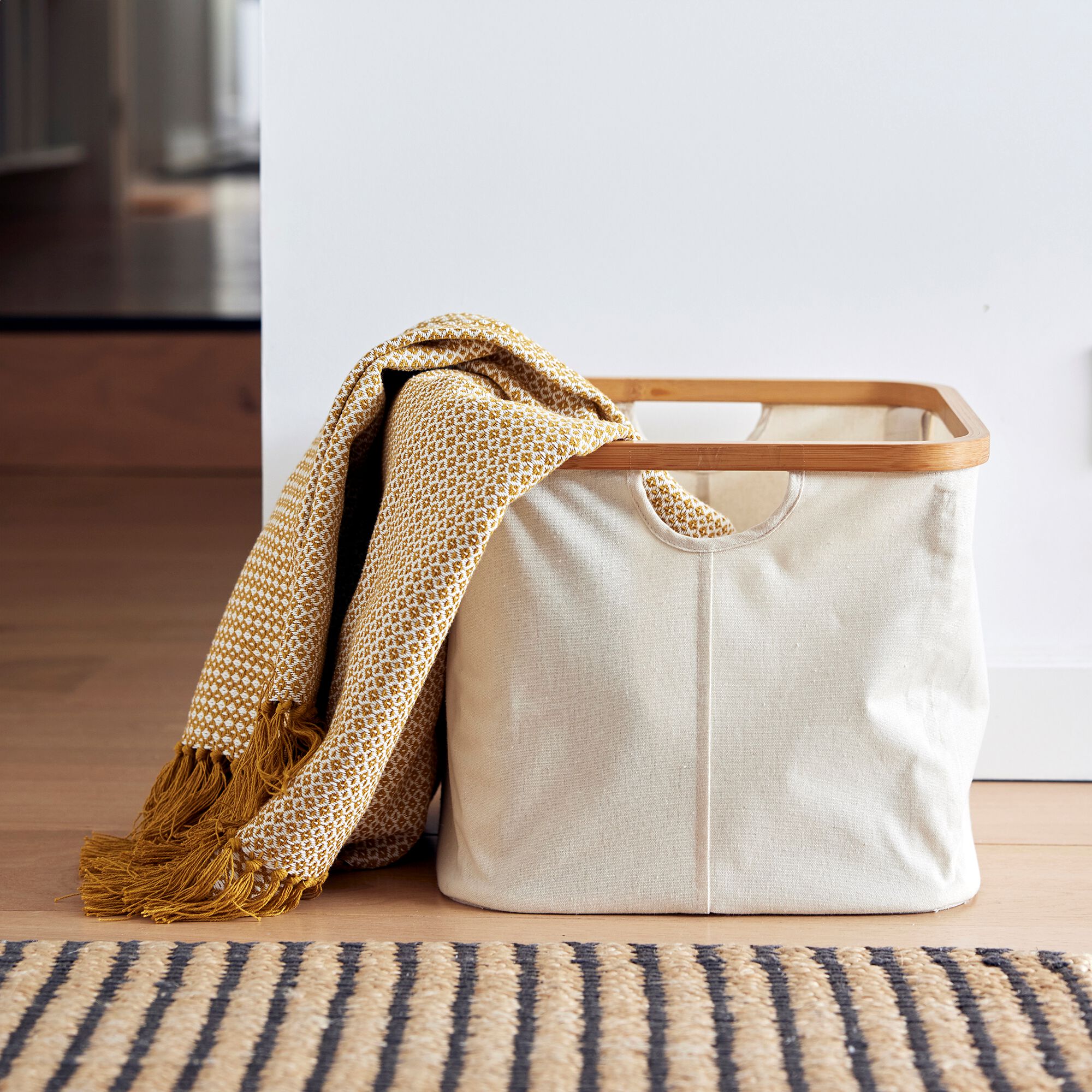 LINO - Panier en polycoton et bambou H15xL33cm - blanc