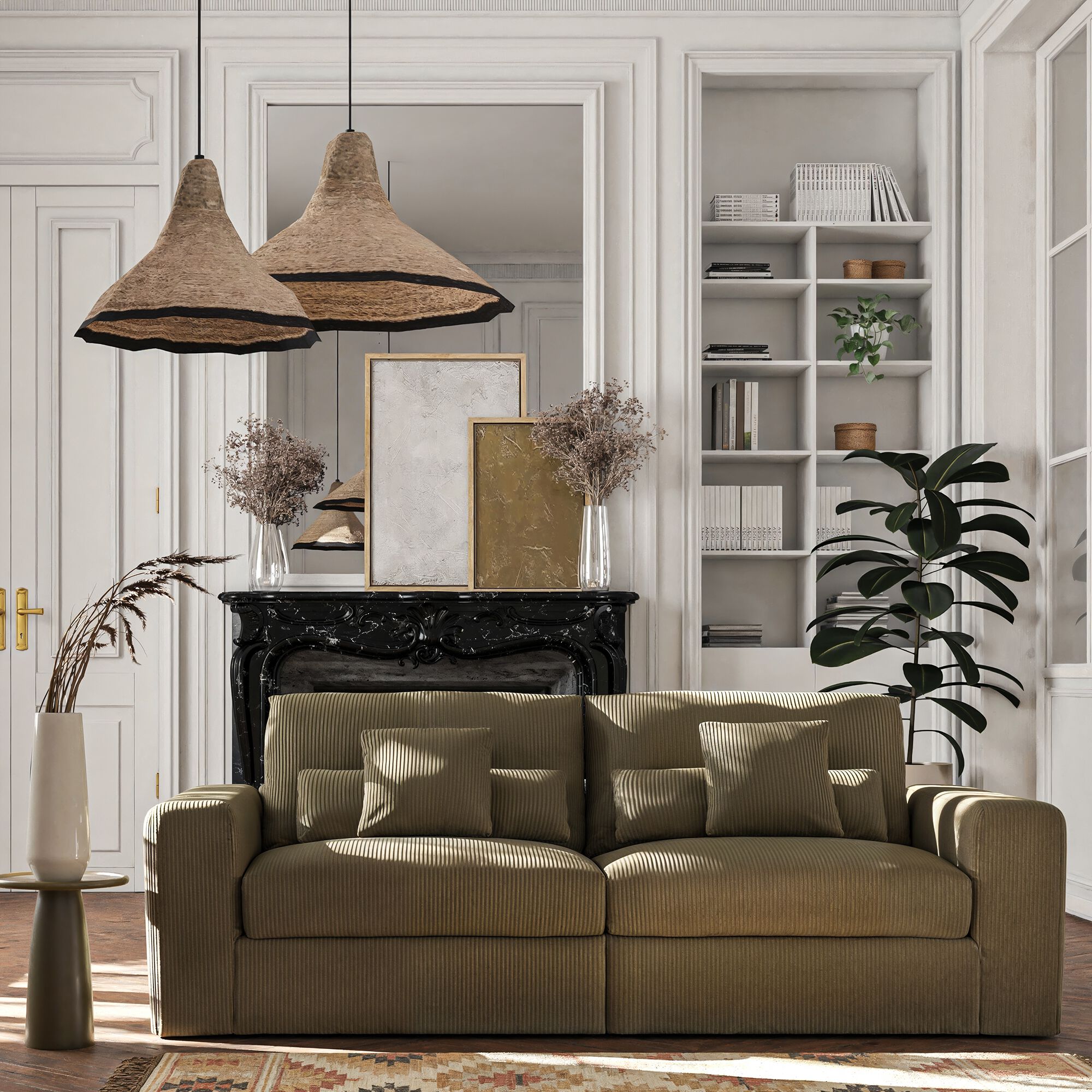 PIUMA - Canapé 5 places fixe en velours côtelé - vert cèdre