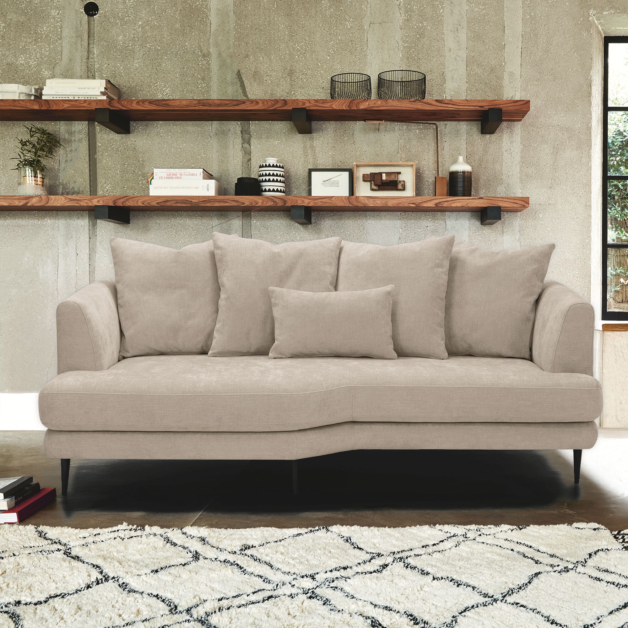 SHELL - Canapé 3 places fixe en tissu bouclette monza - beige