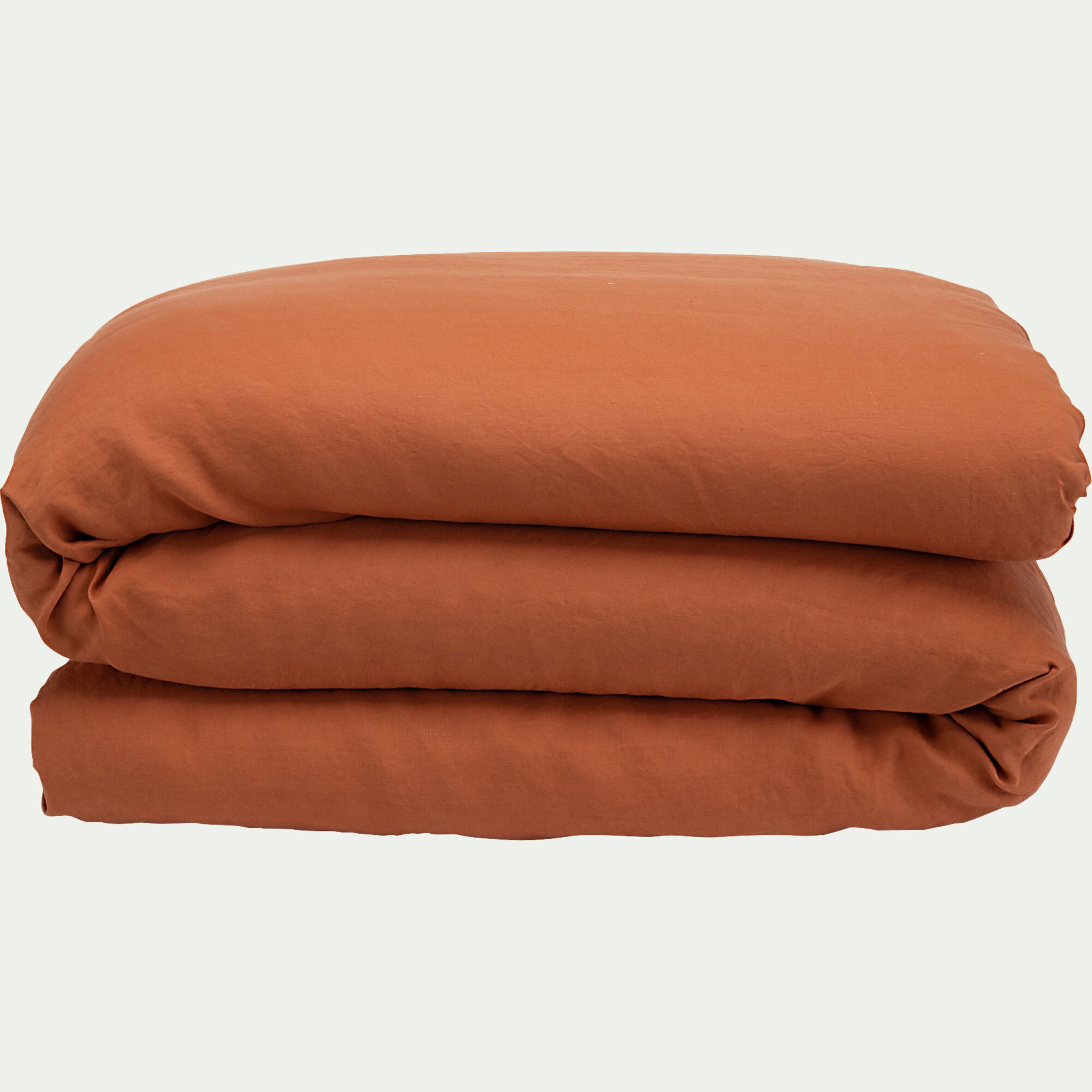 VENCE - Linge de lit uni en lin lavé - brun rustrel