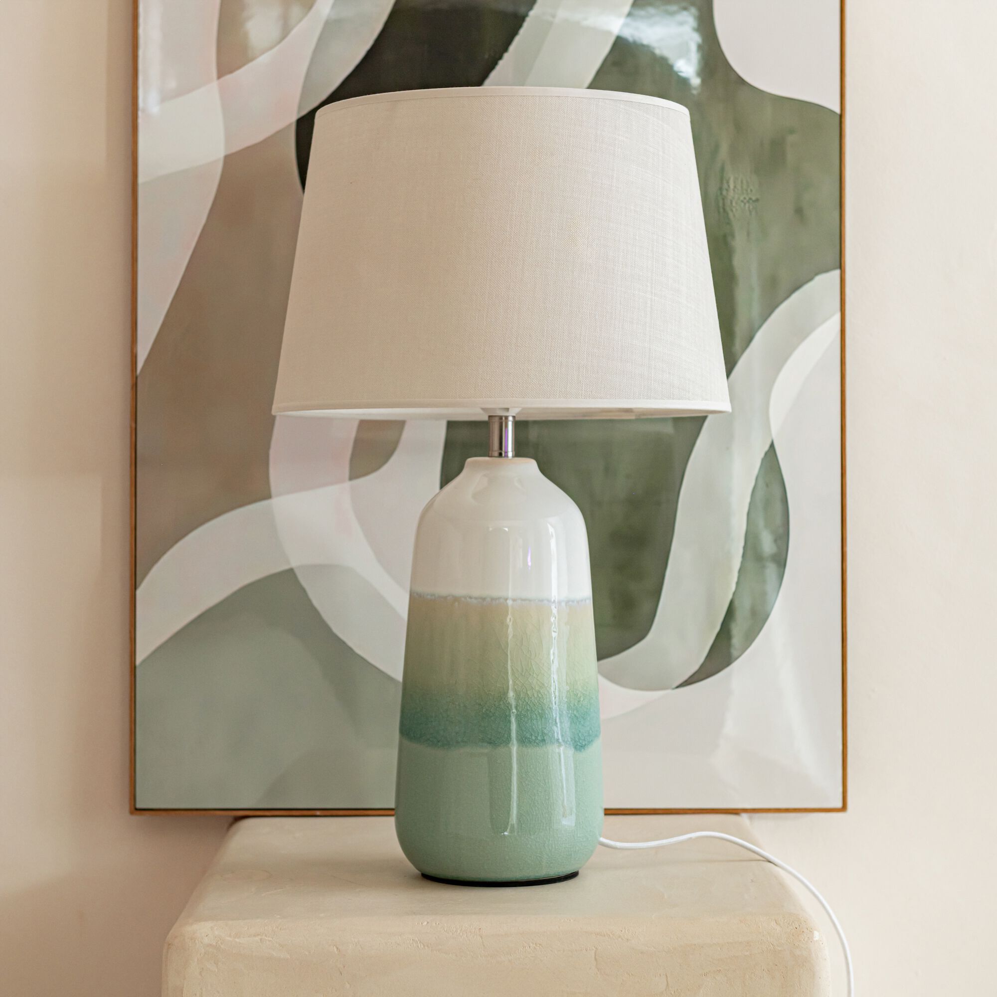 COLAS - Pied de lampe électrifé D14,5cm en grès - vert