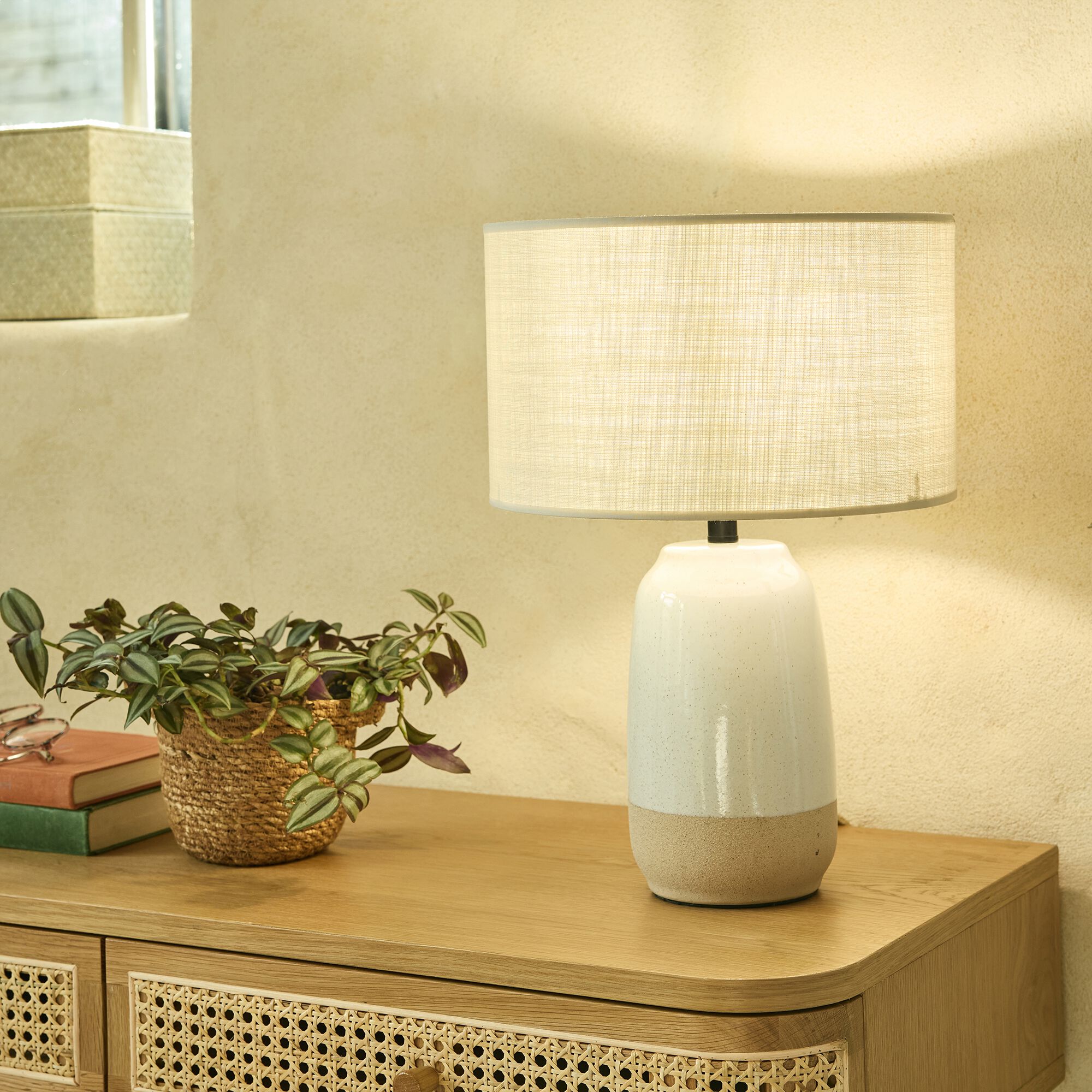 NINO - Pied de lampe électrifié en grès H40,5cm - beige