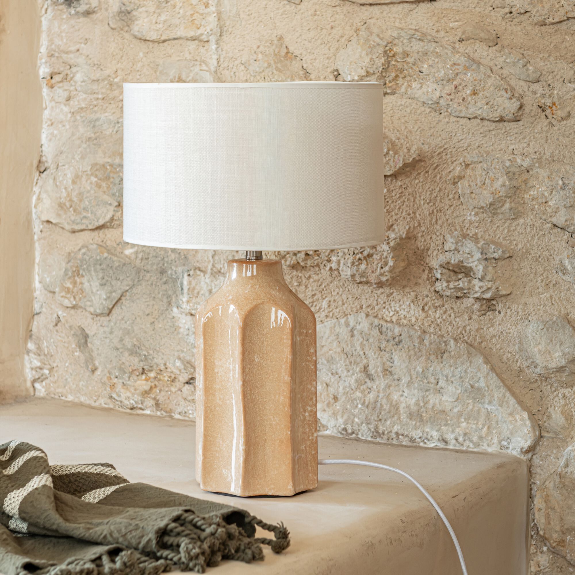 DORLE - Pied de lampe électrifié en grès D12.5cm - camel