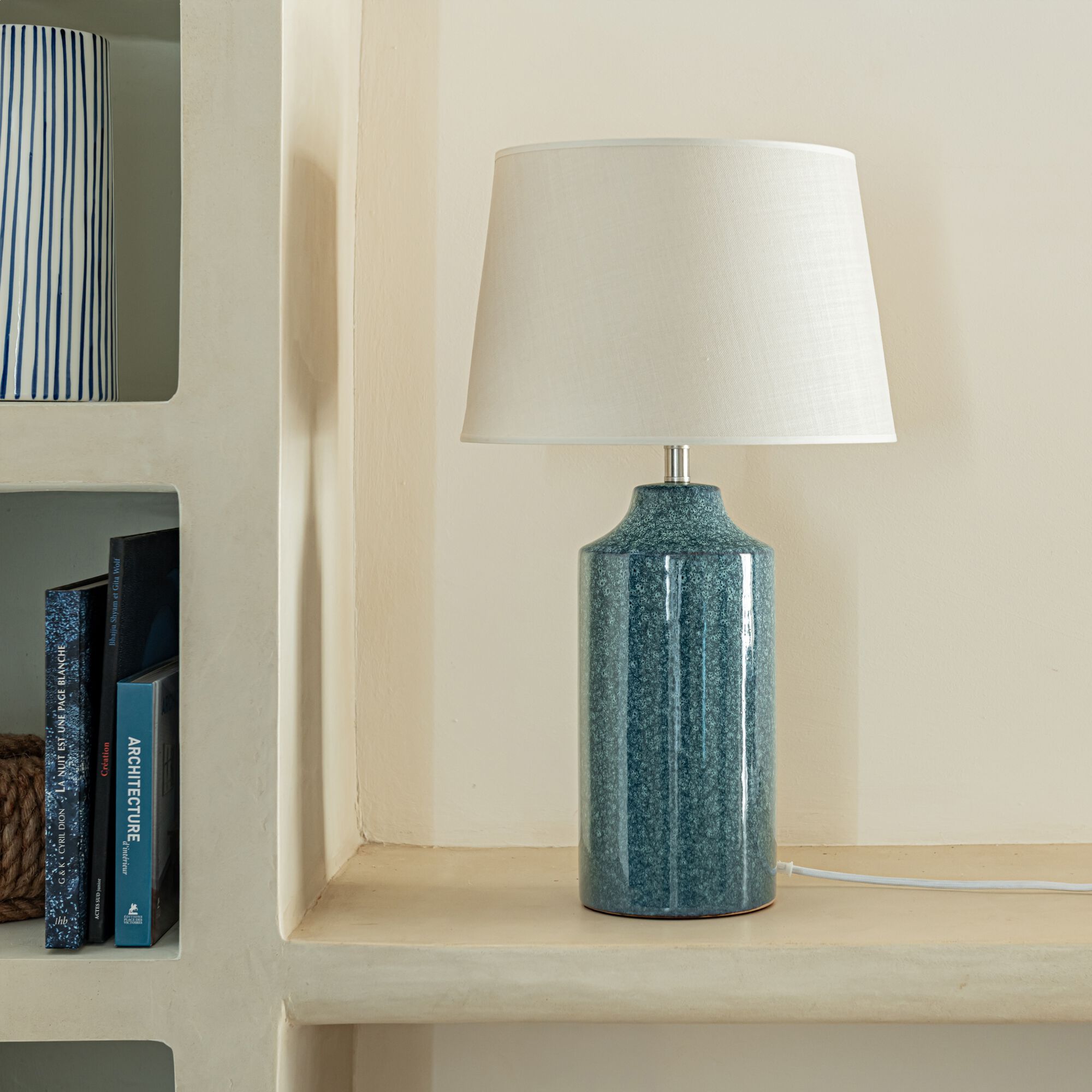HELIOS - Lampe à rayures en céramique - bleu et blanc