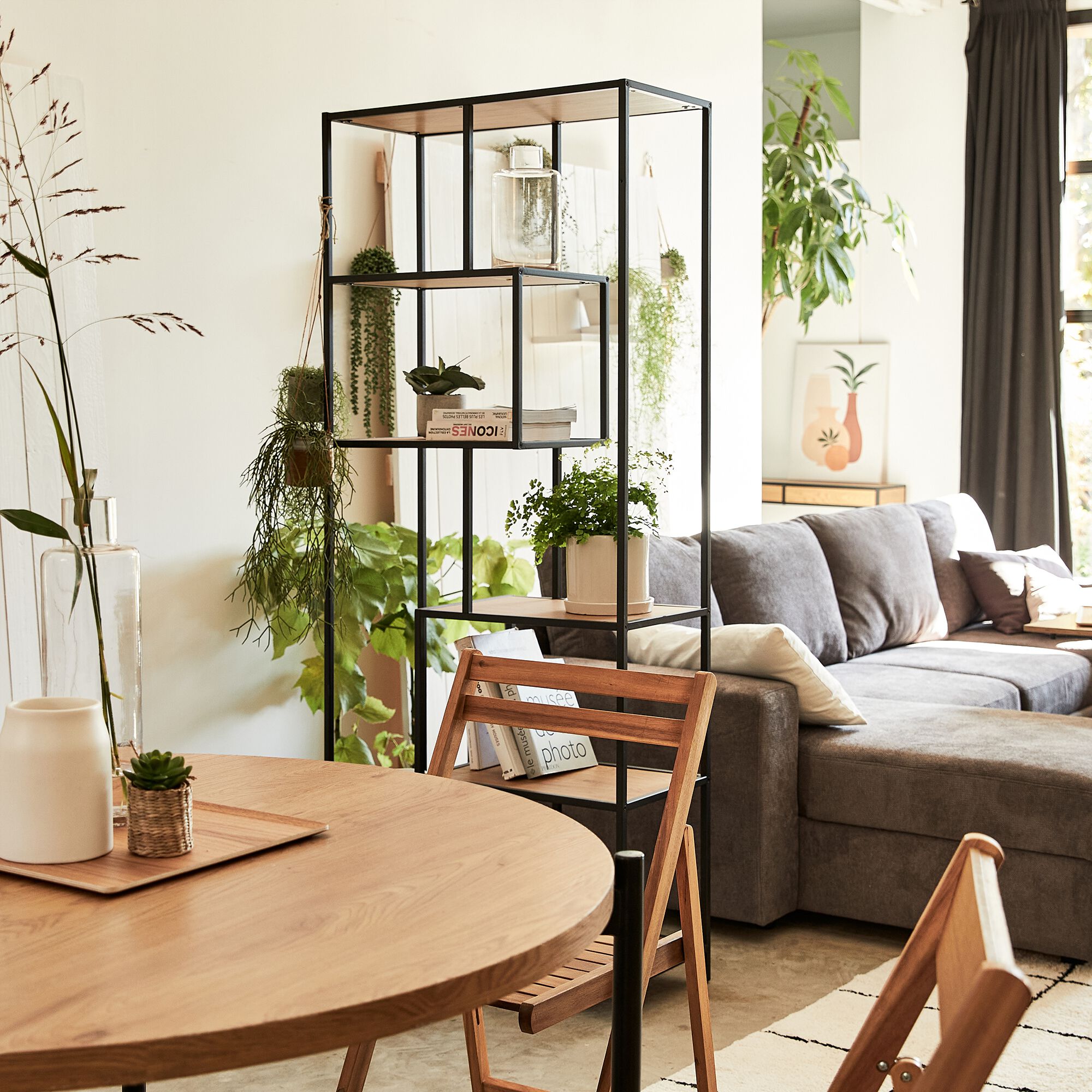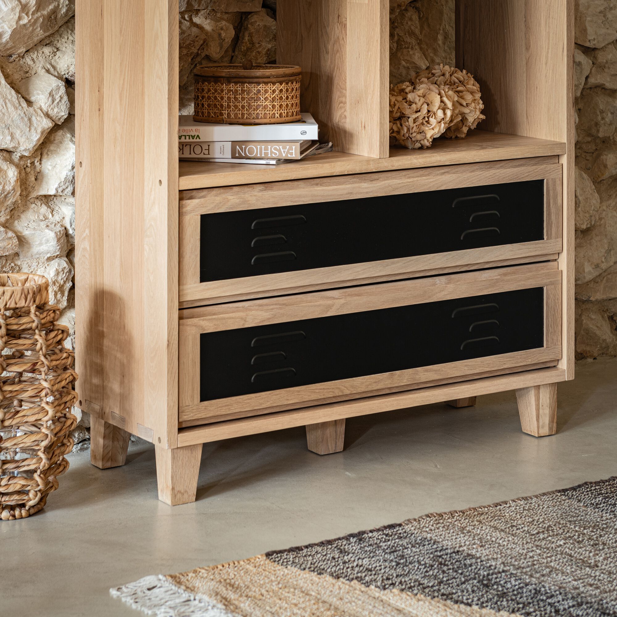 IZZY - Bibliothèque en bois et fer noir l80cm - bois clair