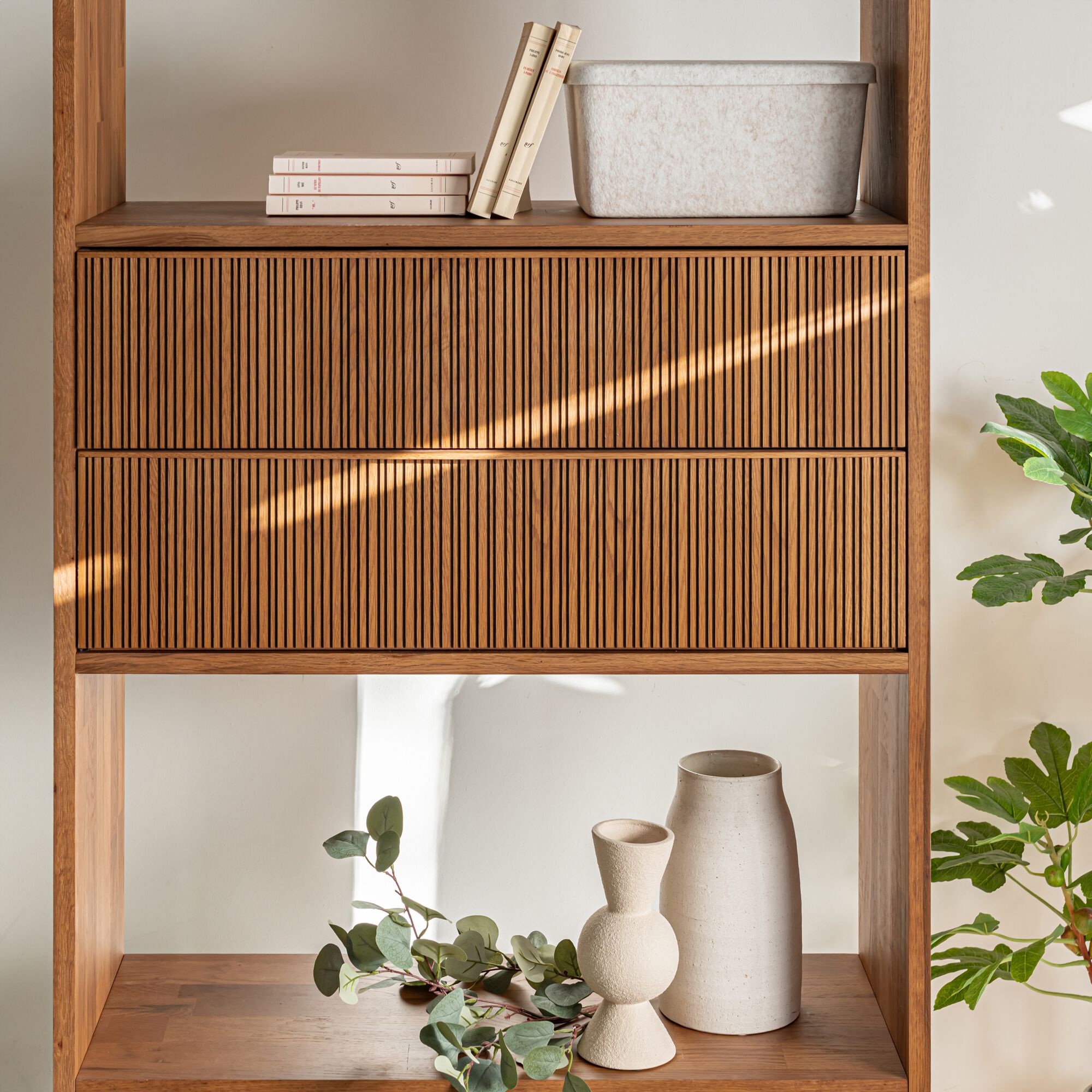 TASSIA - Bloc de 2 grands tiroirs en chêne strié L82cm - bois foncé