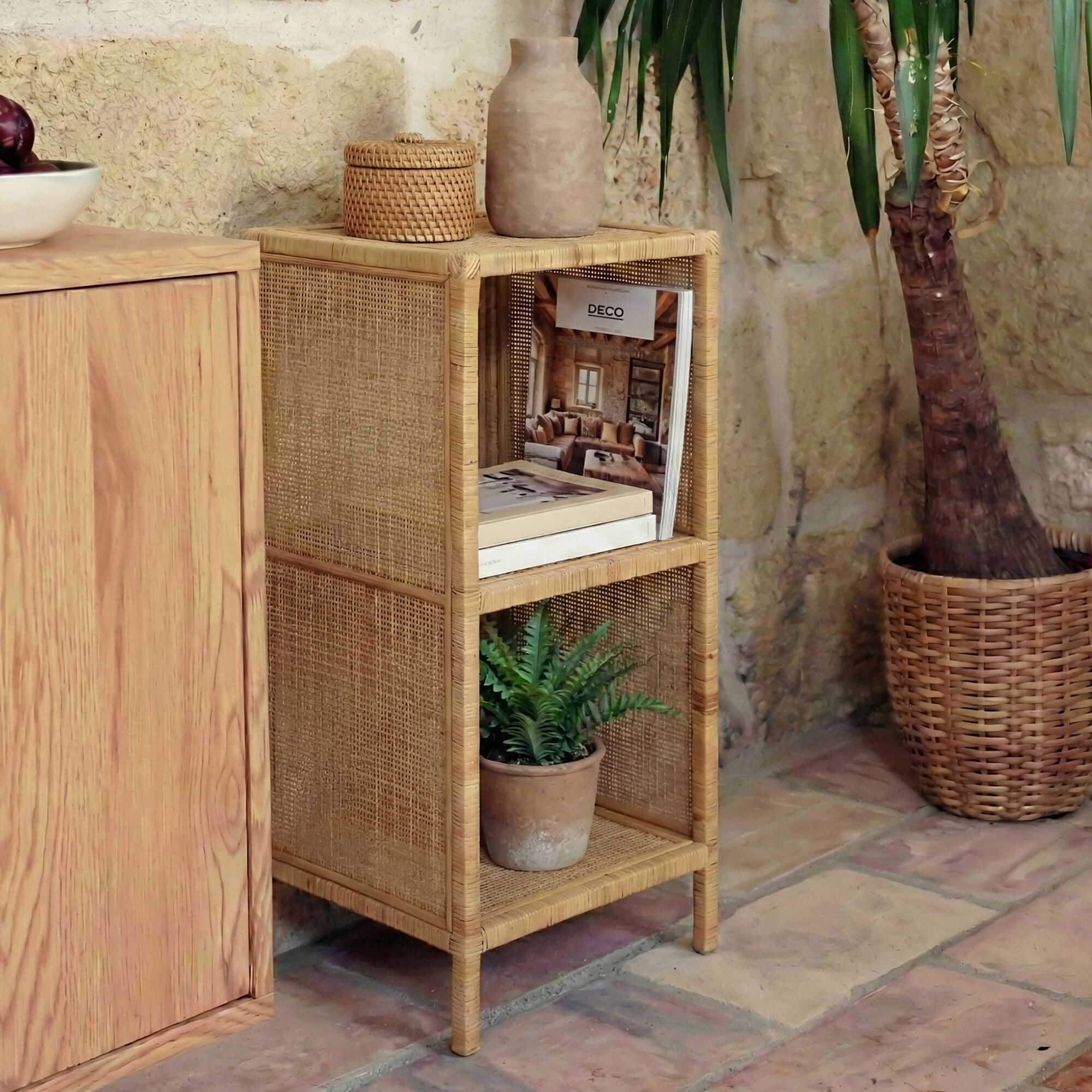 PICHOLINE - Étagère 3 tablettes en bois et rotin - bois clair