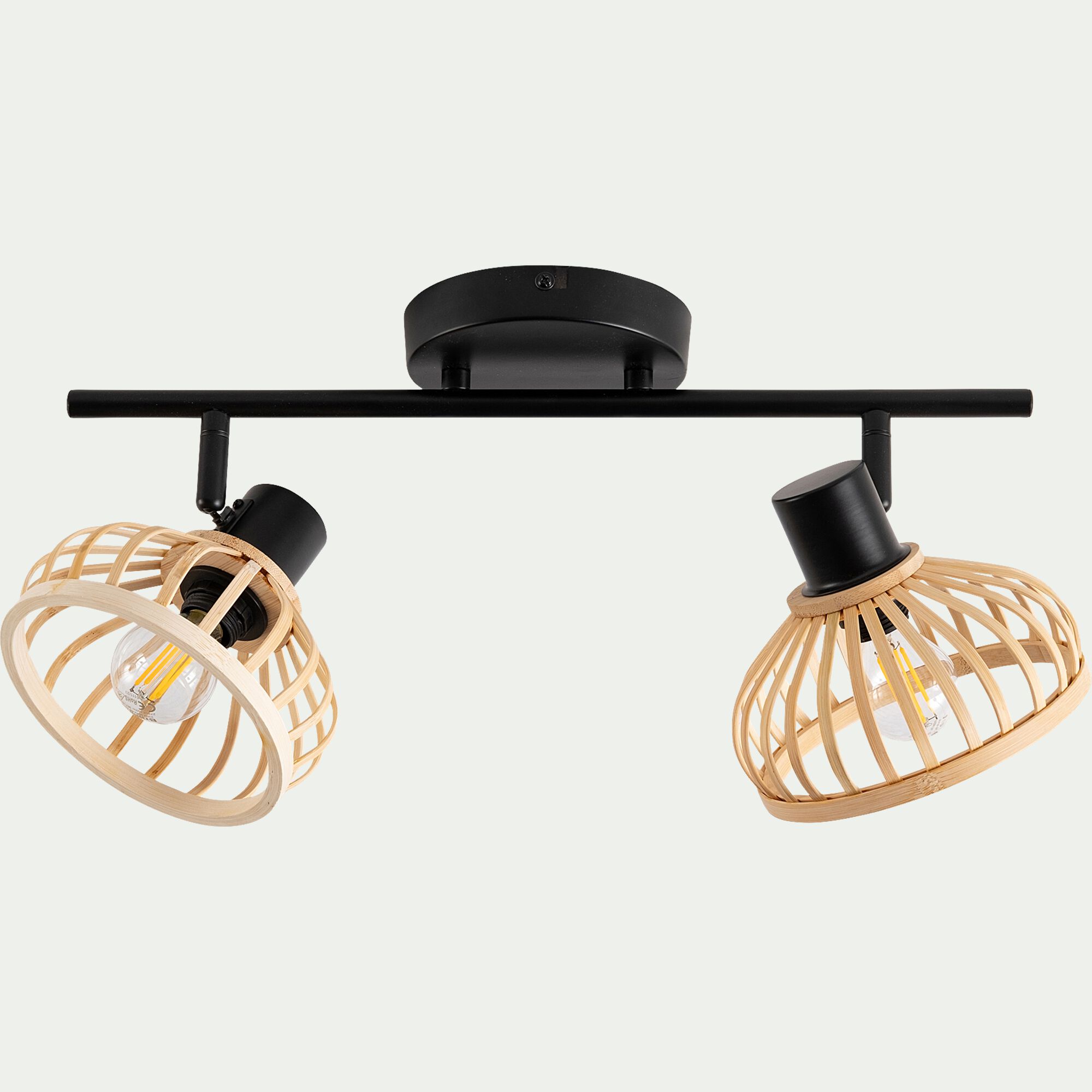 NORAH - Spot double en acier et bambou - noir H15,6xL43,8cm