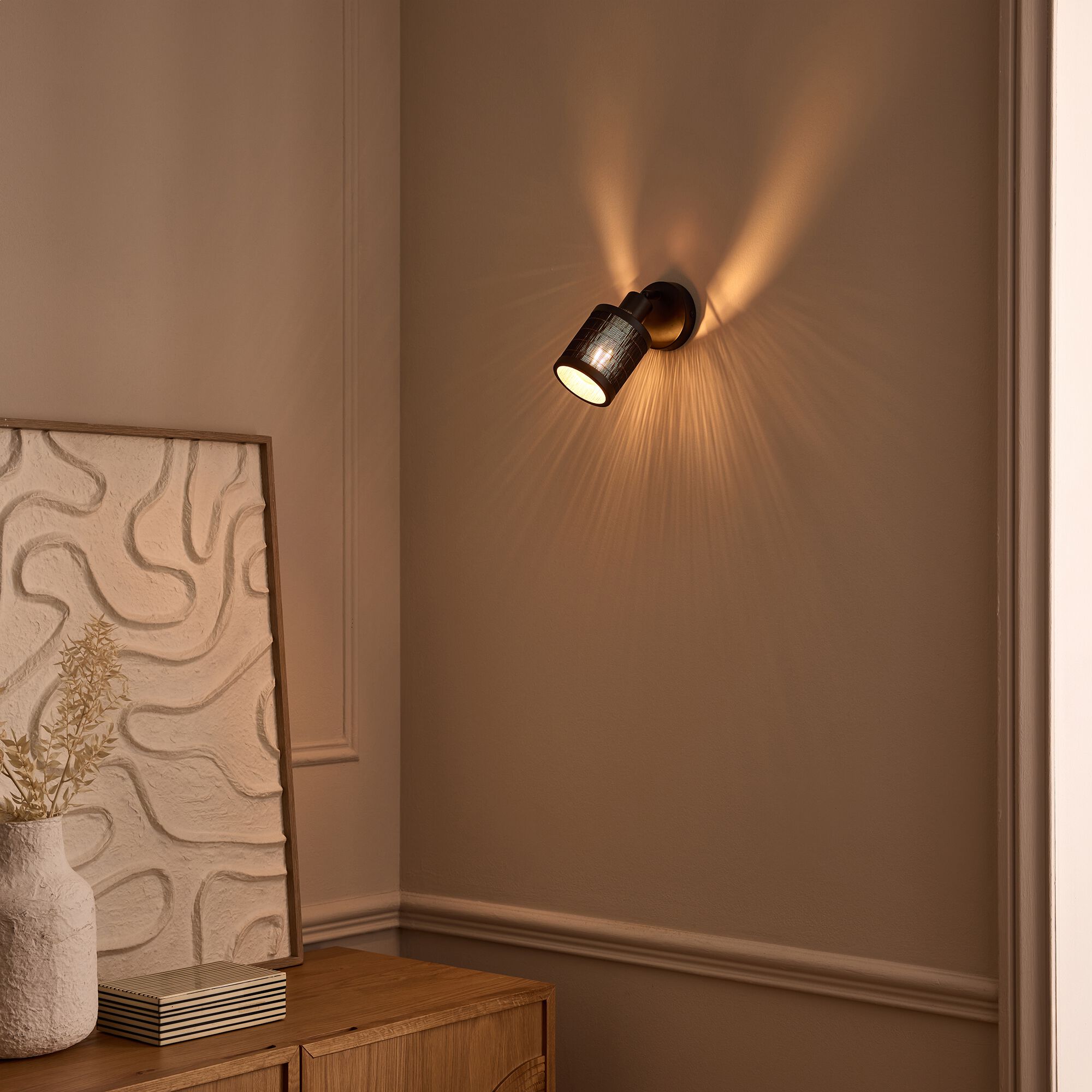 TAGALOG - Spot électrifié en acier et rotin - noir