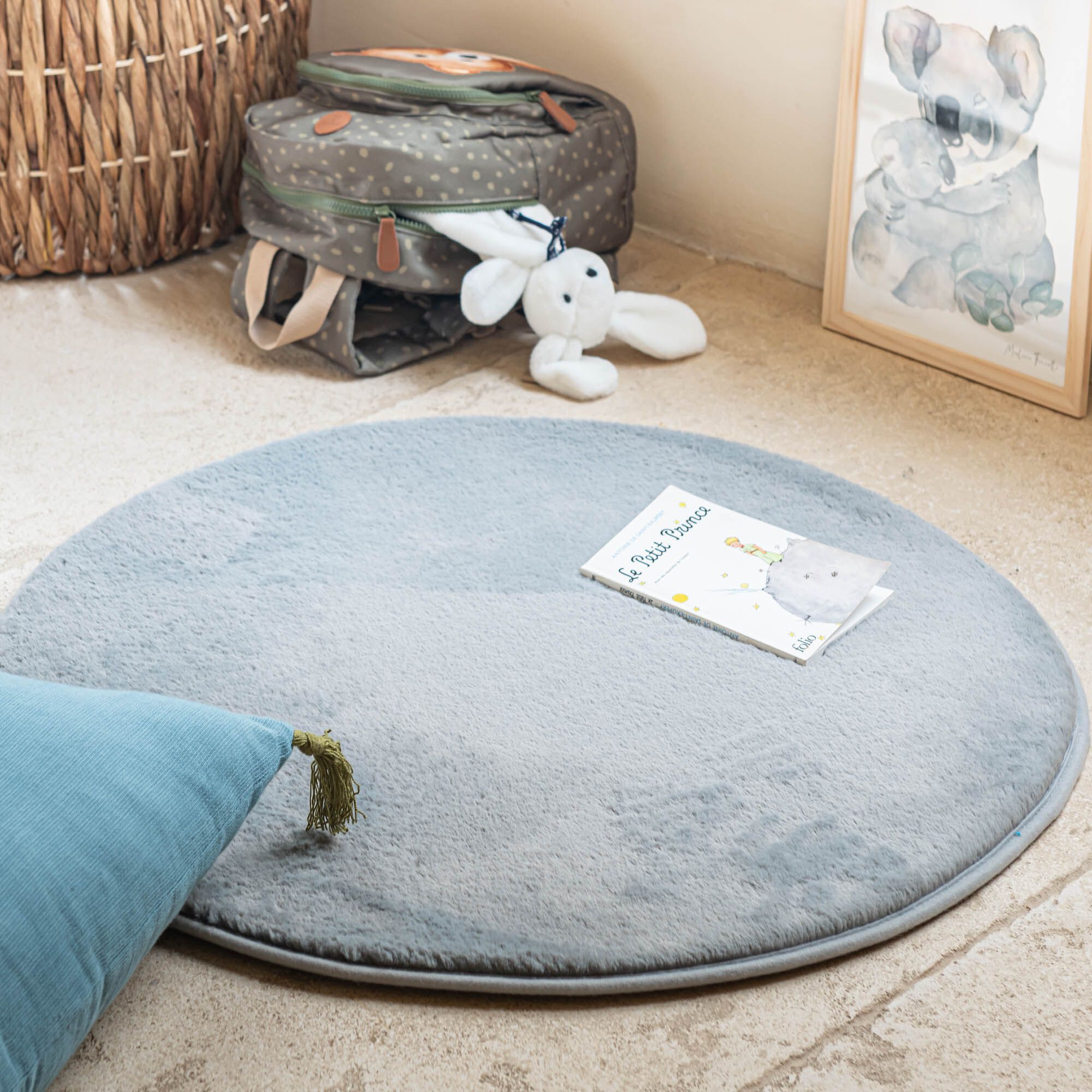 ROBIN - Tapis rond imitation fourrure - bleu calaluna D70cm
