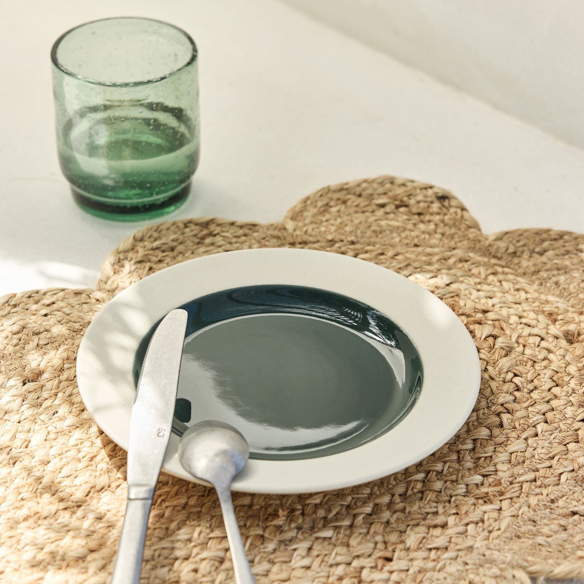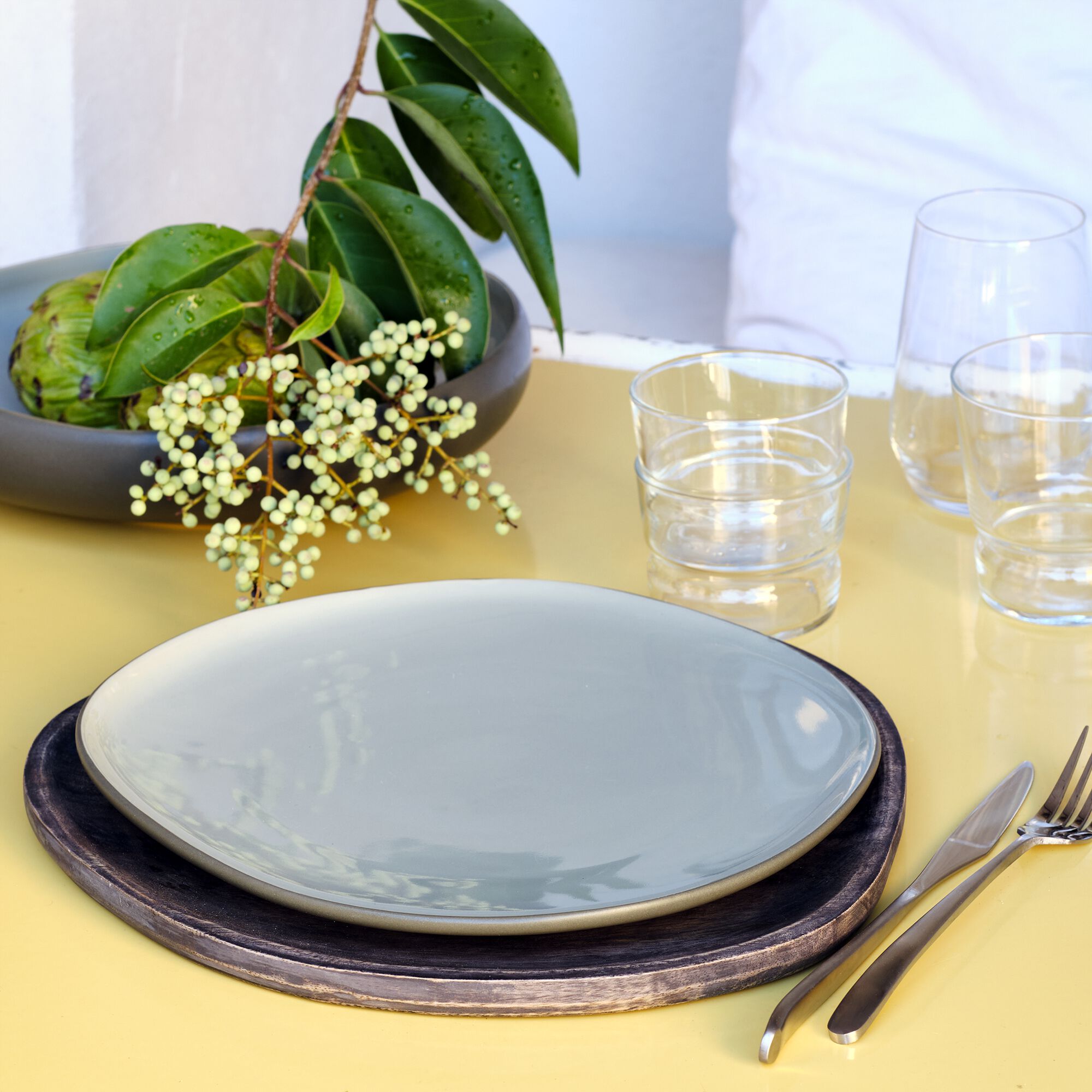 JADE - Assiette plate en grès D27cm - vert cèdre