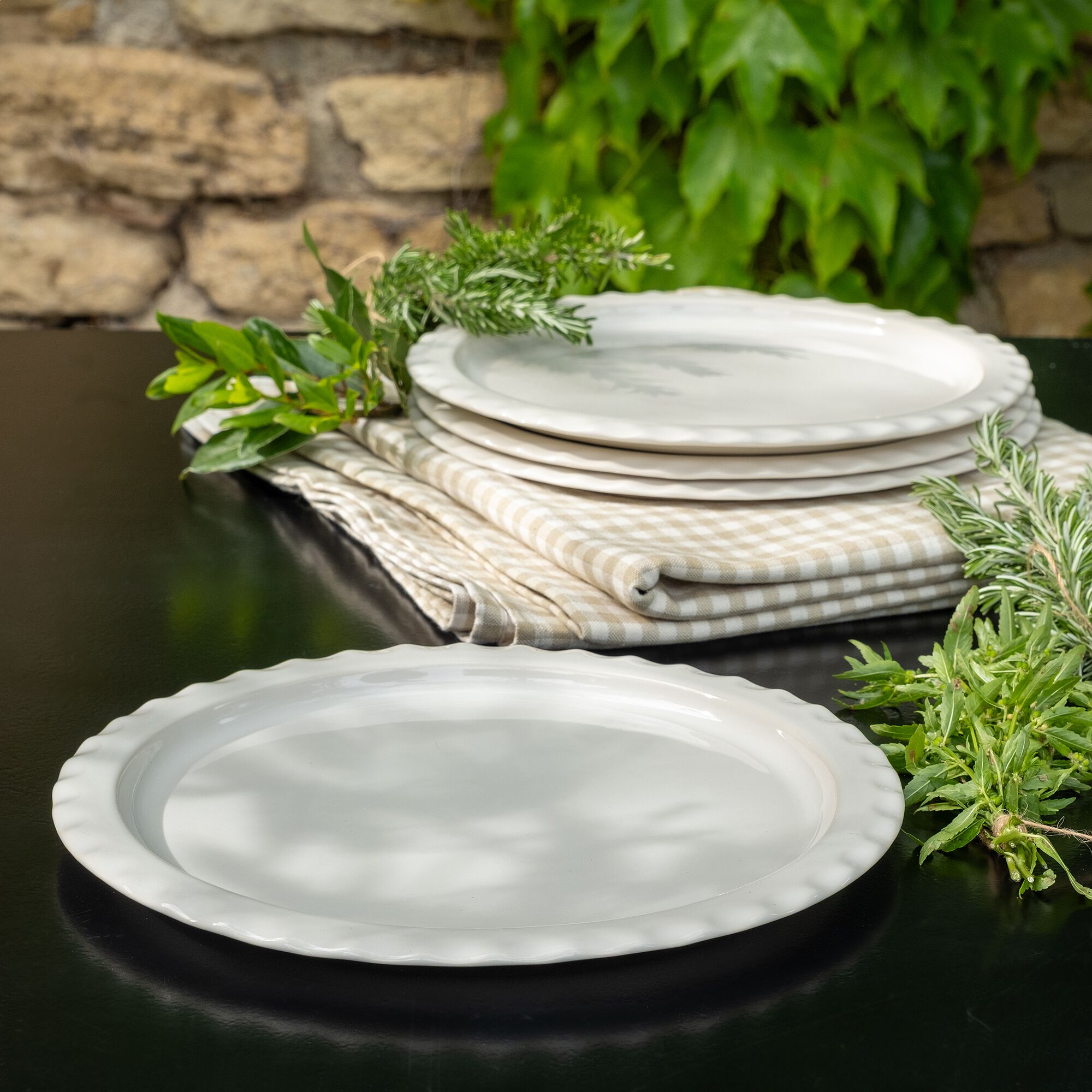 SELMA - Assiette plate en faïence D28cm - blanc ventoux
