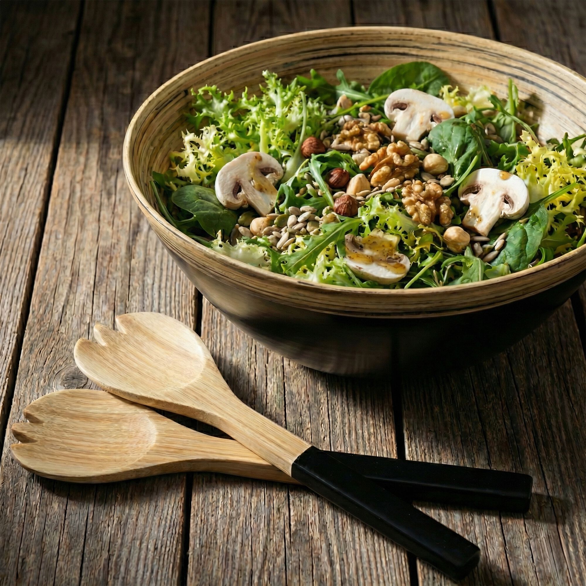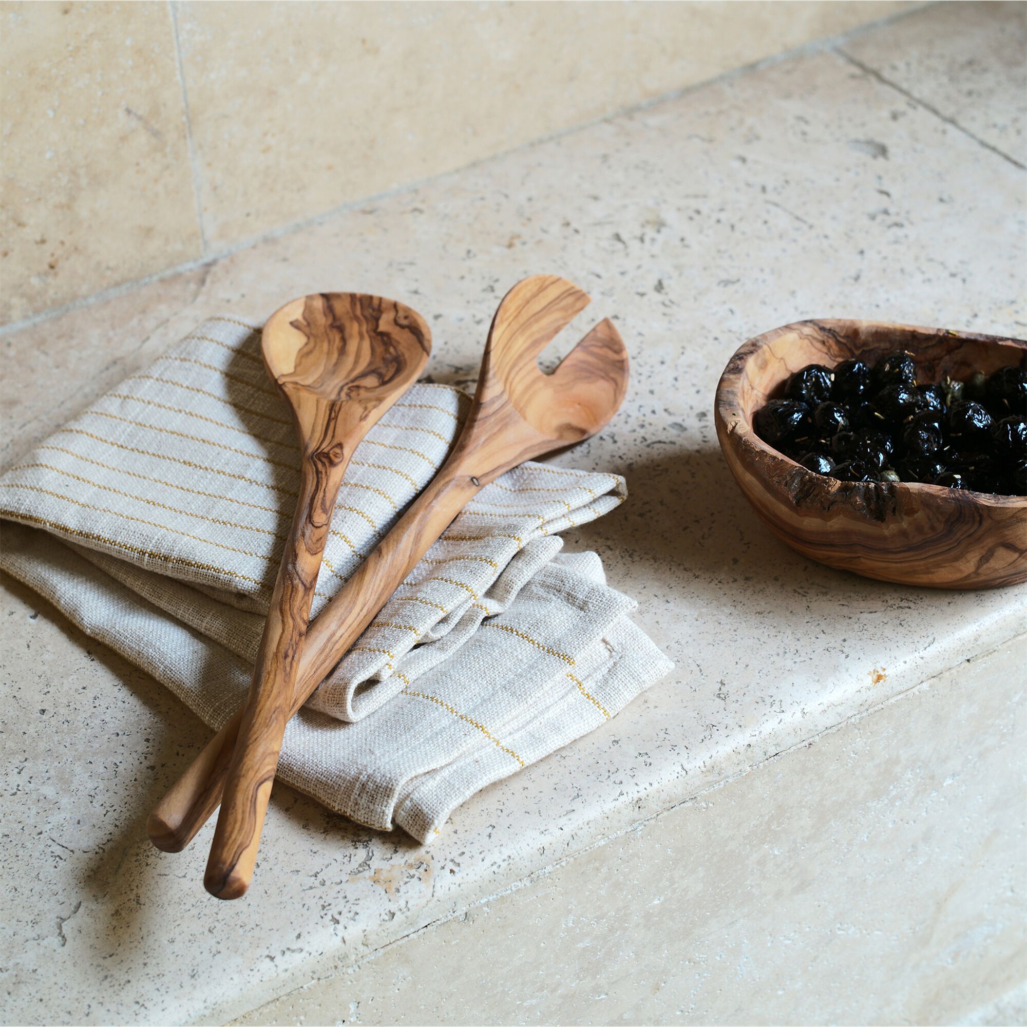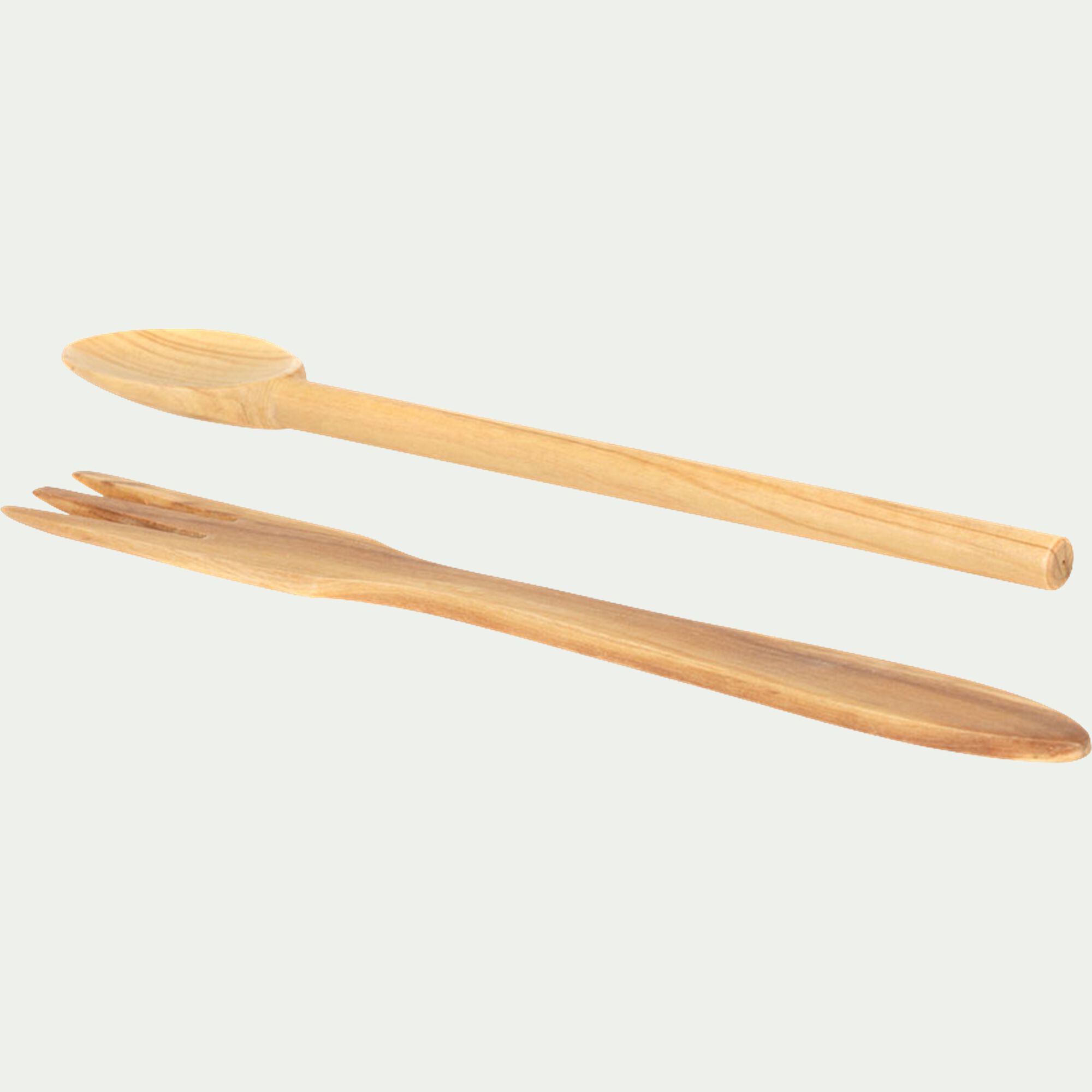 OLIVIA - Couverts à salade en bois d'olivier - bois foncé