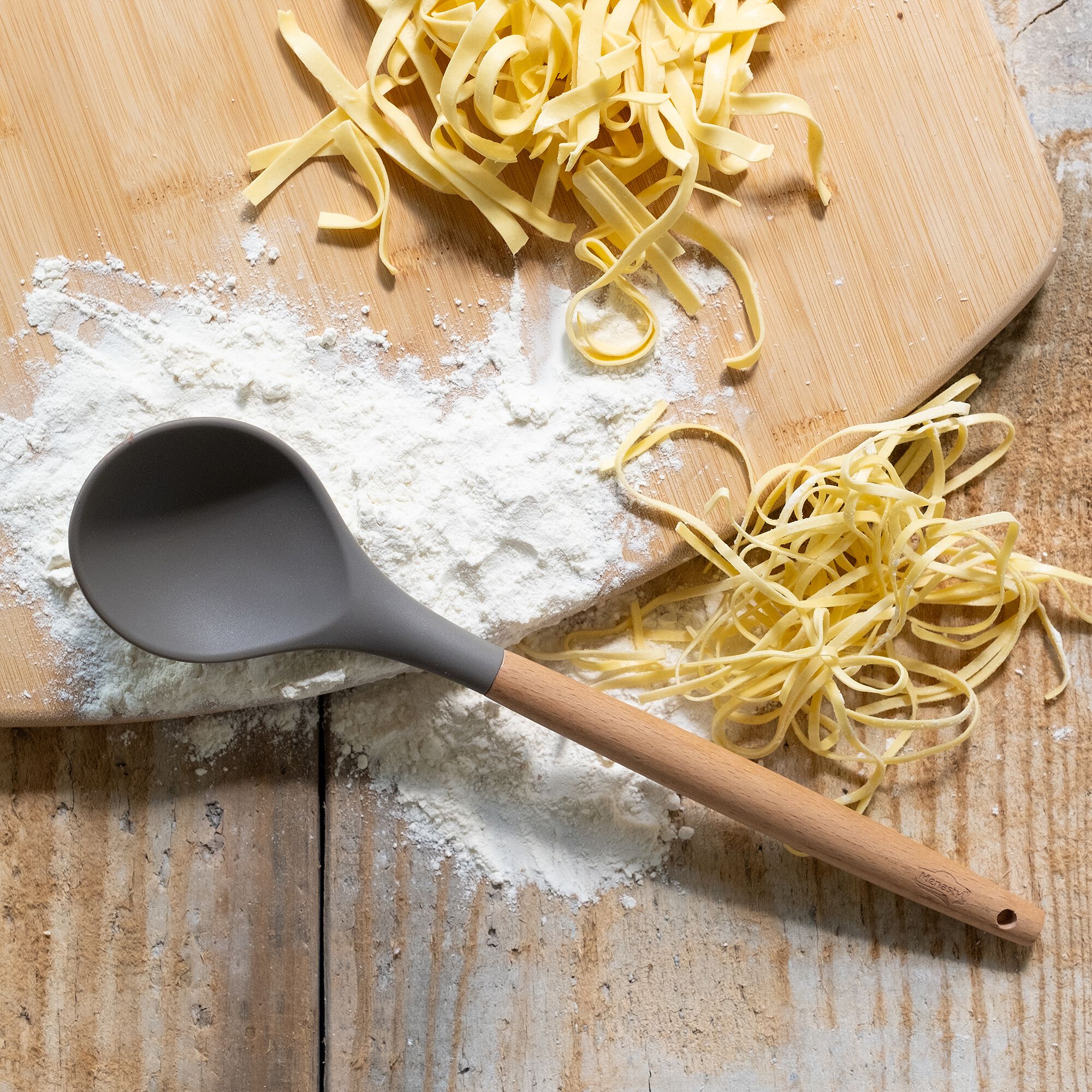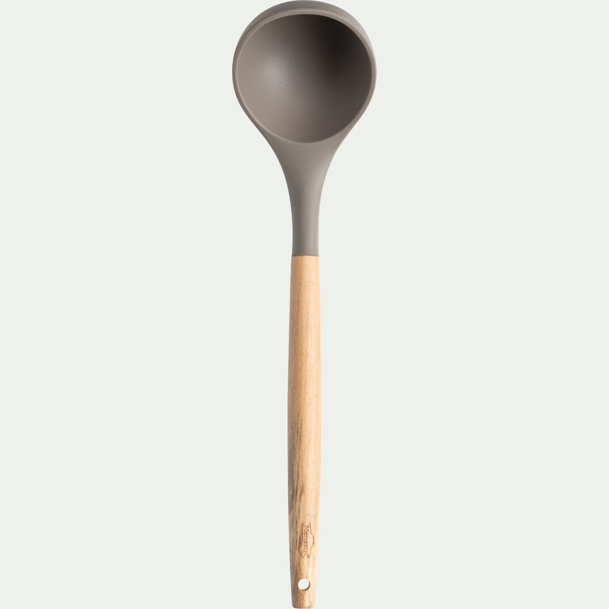 PISTOU - Louche en bois et silicone - brun terre ombre