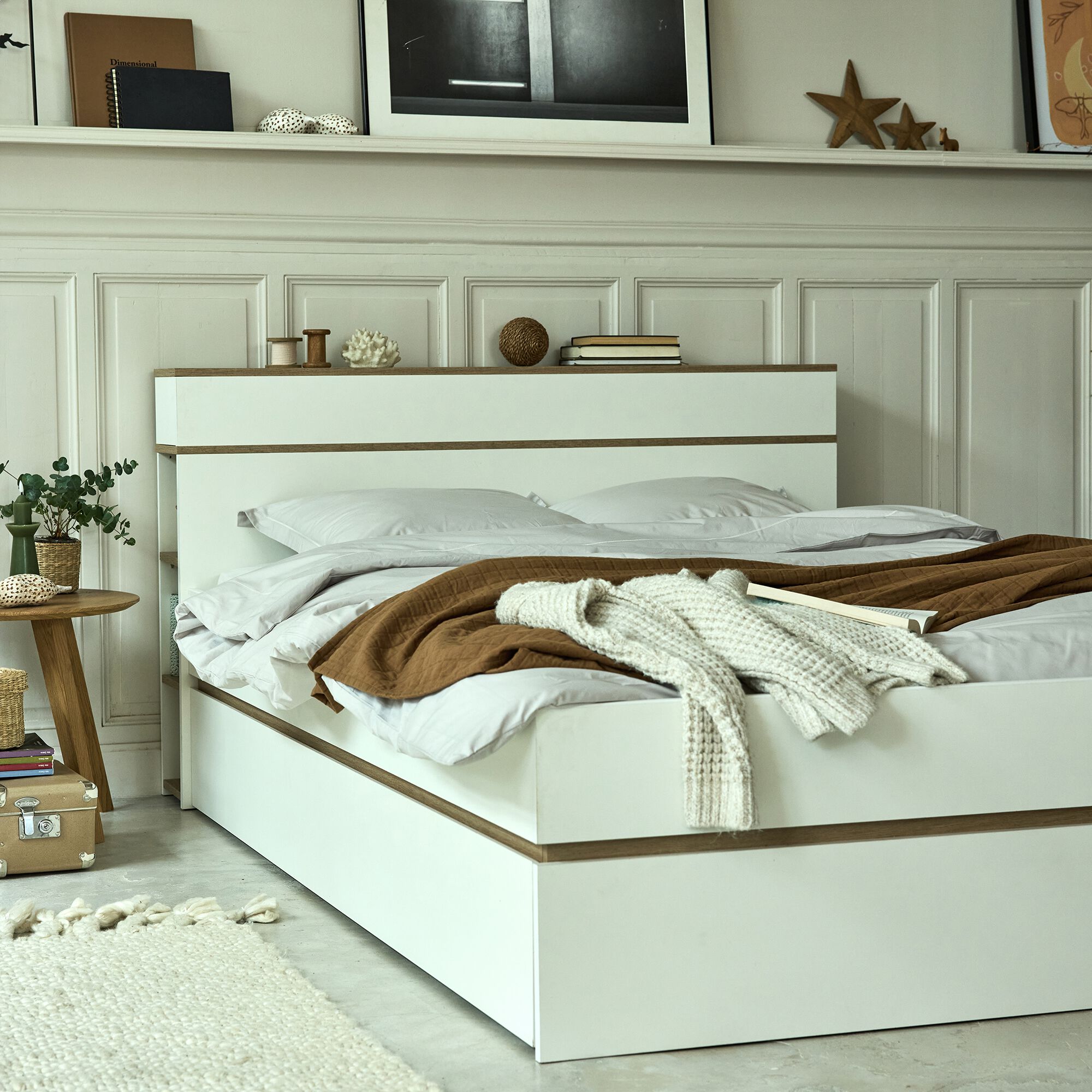 NESTOR - Lit 2 places avec tête de lit en bois 160x200cm - blanc