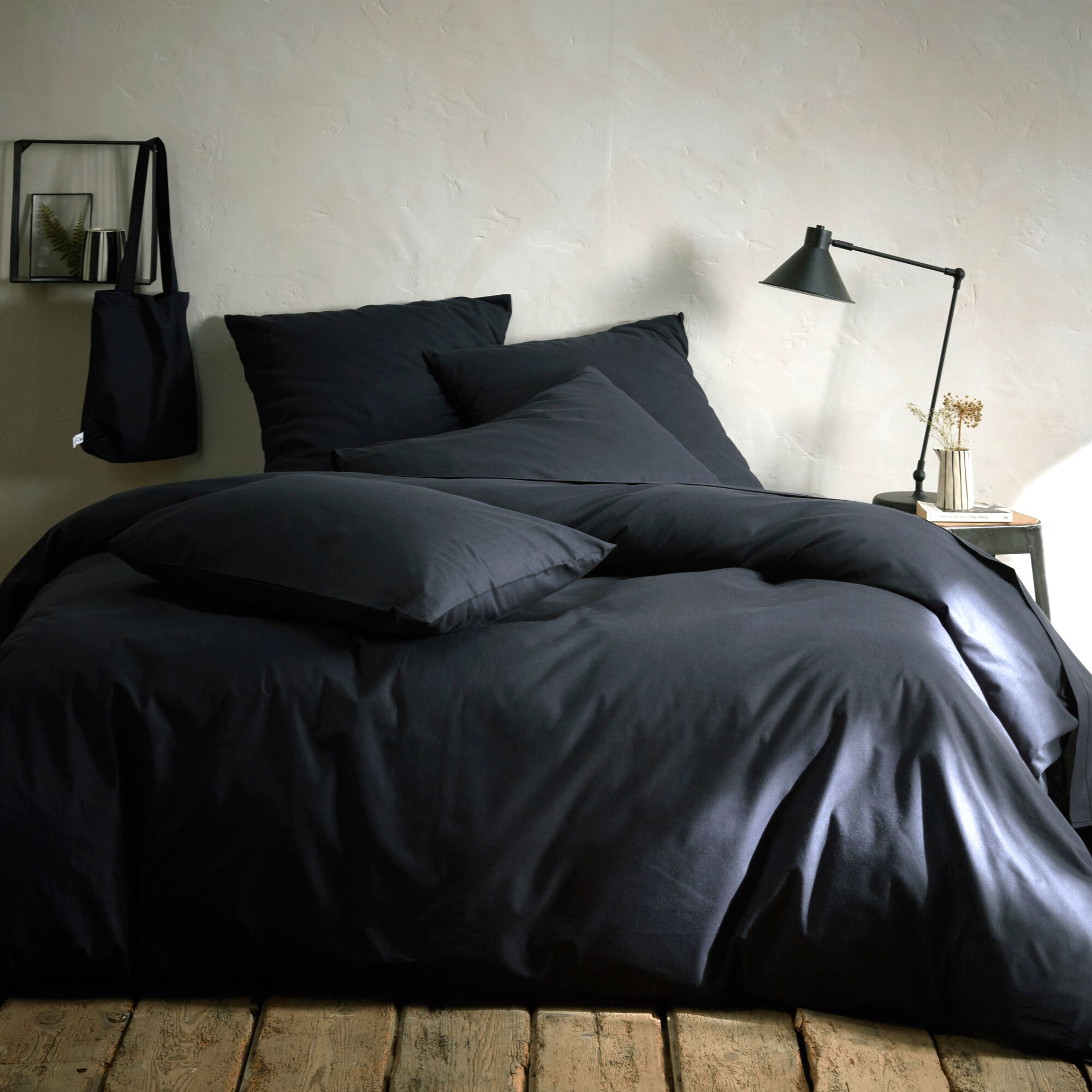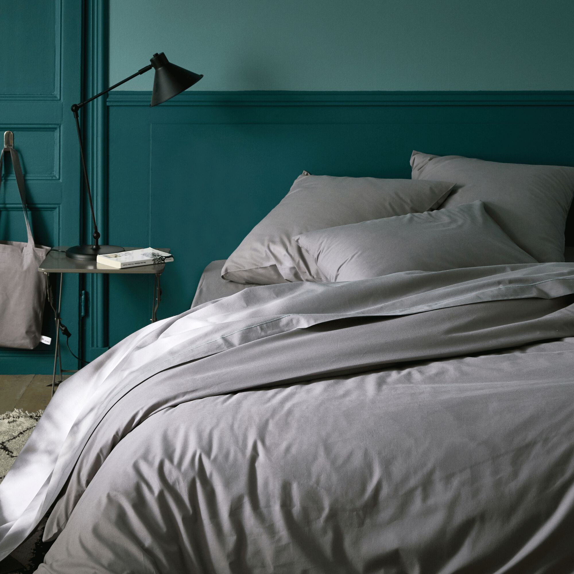 FLORE - Linge de lit uni en percale de coton - gris ardoise