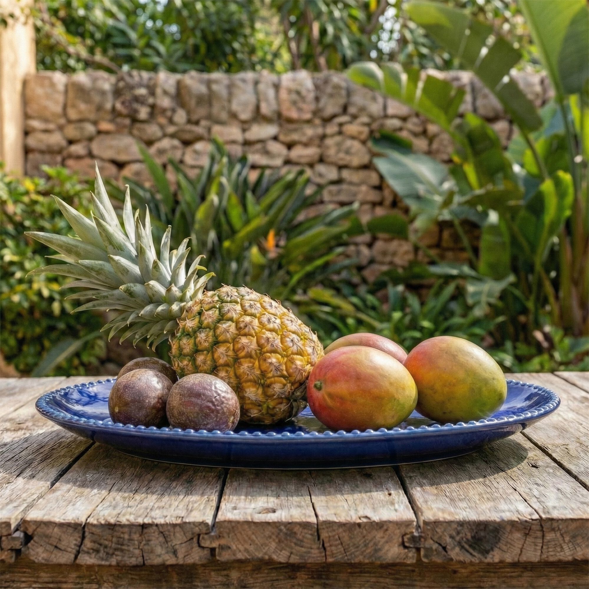 LAGON - Plat de présentation en grès L22,3cm - bleu autan