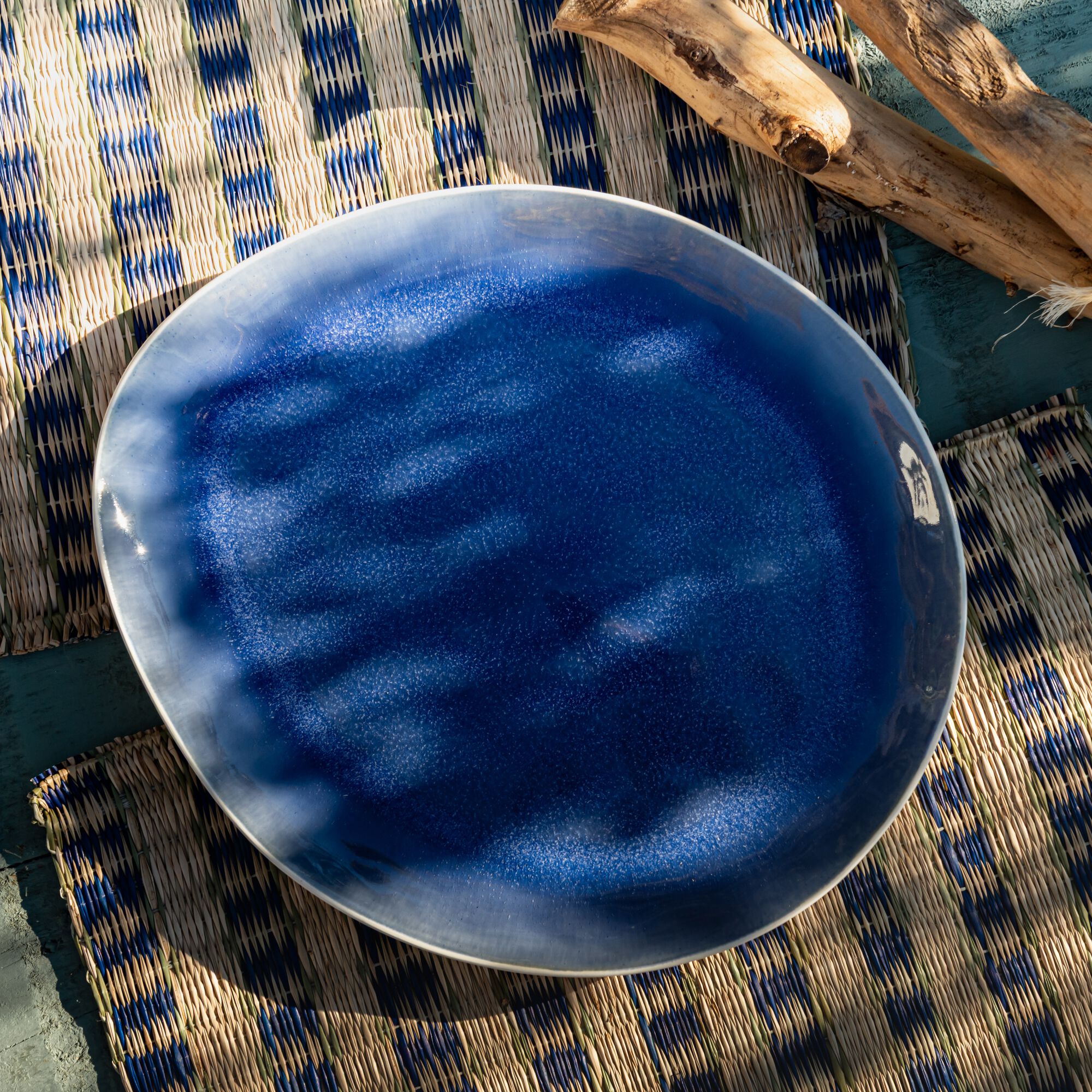 BLUE - Plat de présentation en grès 34x29cm - bleu