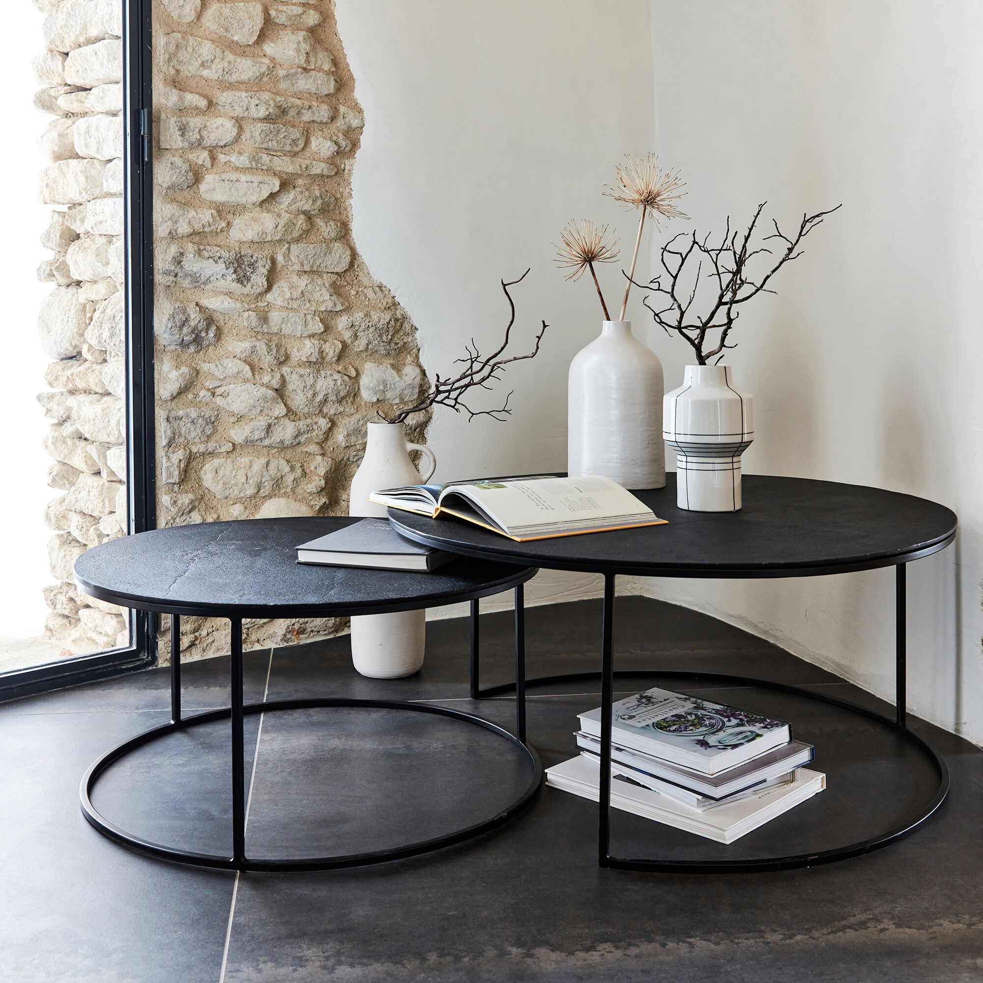 IMBROS - Tables basses gigognes rondes en métal - noir