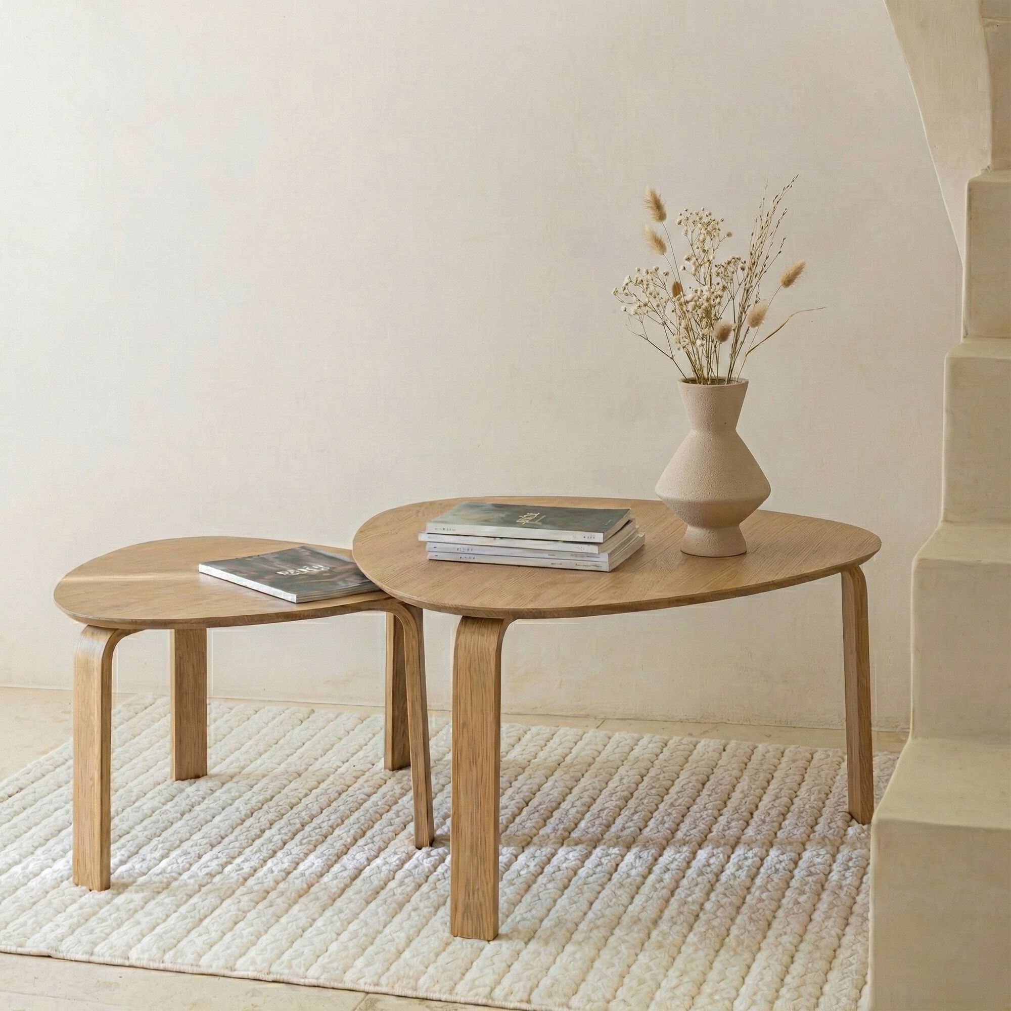 CHARLIZE - Set de 2 tables basses gigognes en bois - bois clair
